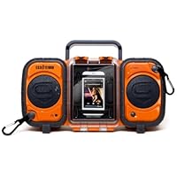 Excellent sound from a small package. I am very pleased with the versatility of the radio. You can hang it on a chair at the beach and listen to you iPod touch or iPhone without concern for sand or unexpected showers. The only things that would improve it would be if it had a remote control and came in crimson instead of orange.After reading the reviews on this product, I decided to give it a try. I was thinking how cool it would be to have speakers on my raft. I put the batteries in and played it at home. The speakers weren't all the way loud, as expected, but I was willing to compromise to get something waterproof. I put it in my raft, in the back and out of the splash zone. It broke within 5 minutes of being on the water. On/off buttons simply stopped working; it was dead. Later the on button would make the indicator light blink but it still would not play music. Clearly, it was haywire. My mp3 player was working inside the window, but the POS boombox had died. There are better non waterproof boomboxes out there that play louder, truer sound. This isn't waterproof.